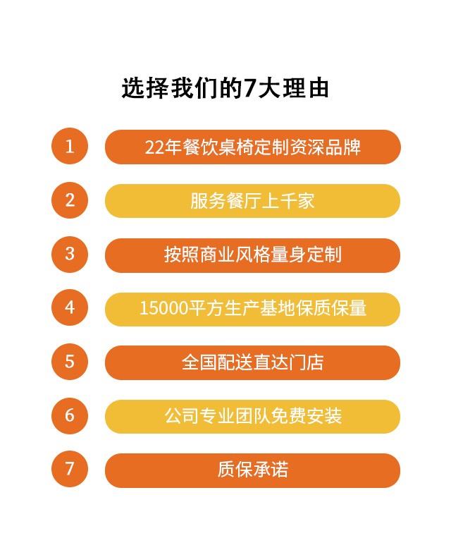 博偉餐飲家具專業(yè)服務(wù)餐飲家具20余年,先后服務(wù)1000+連鎖餐飲,業(yè)務(wù)覆蓋10多個省份300+城市,用好原料做好桌椅,全國質(zhì)保,注重品質(zhì)服務(wù)。